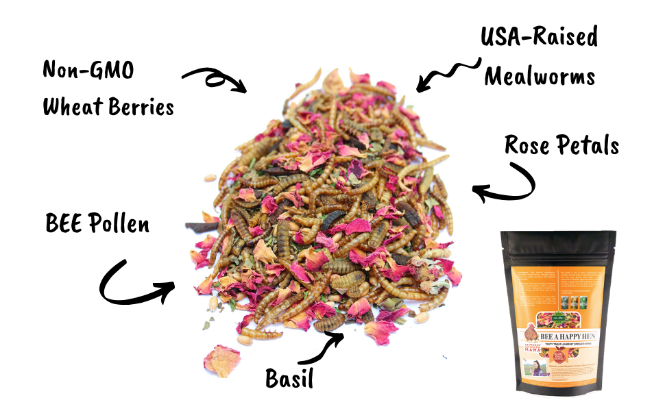 BEE A Beautiful Hen Herbal Treat With Mealworms, Wheat, Bee Pollen, & Rose Petals For Chickens 4 lb