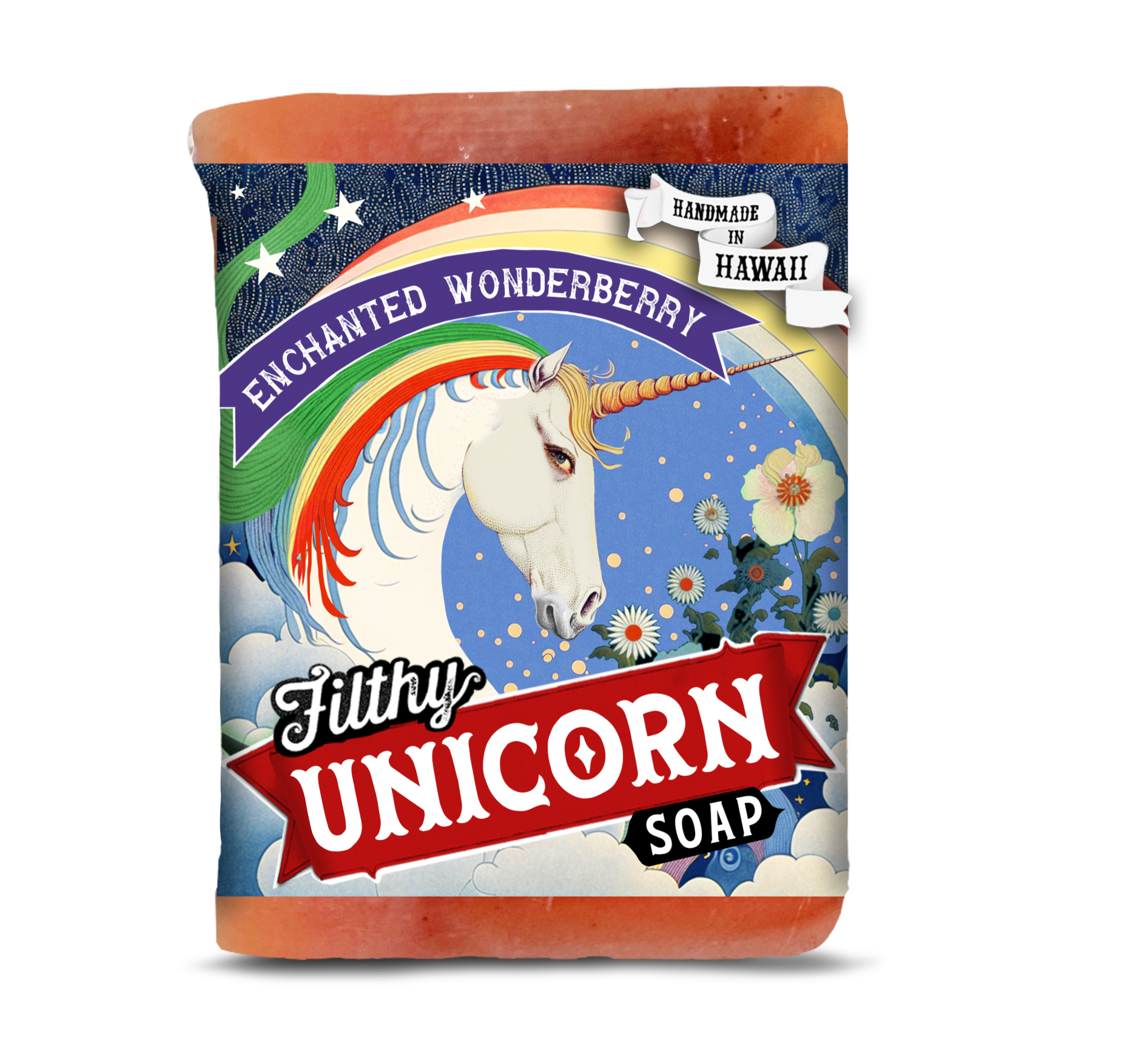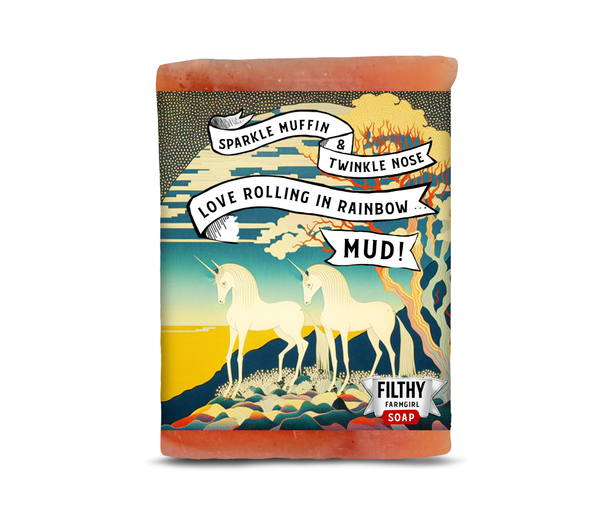 Our unicorns, Sparkle-Muffin and Twinkle-Nose just love rolling in rainbow mud. Normally they loath taking baths, but once they see this special soap, they can’t resist galloping’ into the tub for a delicious scrub! 100% Natural Ingredients: Saponified Coconut, Palm, Castor & Safflower oils, Kosher Vegetable Glycerin, Purified Water, Organic Gogi Berries, Acai, Cherry Extract, Raspberry Extract, Cinnamon, Citrus Essential Oils, Ginger, Organic Coconut Oil, Sorbitol, Sorbitan oleate, oat protein.