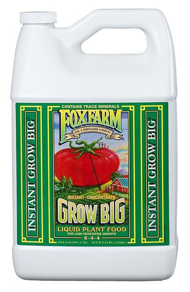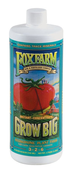 Based on our popular Grow Big Liquid Plant Food, this is a special formula just for hydroponic systems. Grow Big Hydroponic Liquid Plant Food is a potent, fast acting, liquid concentrate fertilizer specifically designed for hydroponic use. When used as directed Grow Big Hydroponic encourages vigorous vegetative growth. We add earthworm castings and Norwegian kelp into this special brew to encourage sturdier, healthier stems and leaves, but we also provide enough nutrients and trace minerals to create the kind of healthy branching that you+AJI-ll need later in the season for more abundant buds and blooms.