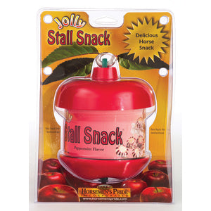 Horsemen's Pride SS201 A Jolly Stall Snack Holder with Treat comes with a treat for your horse. Jolly Stall Snacks are lick-able horse treats/horse snacks that break up boredom and curb cribbing.