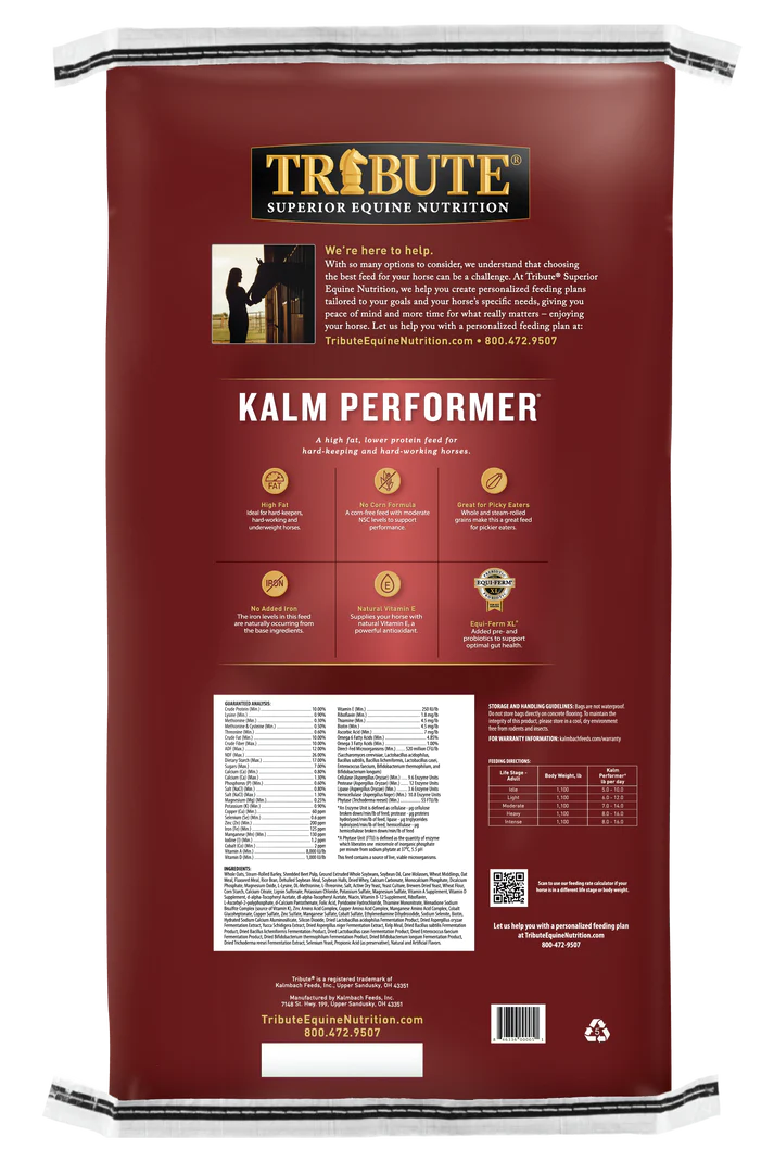 Kalm Performer®, Textured, High Fat Equine Horse Feed 50lb bag