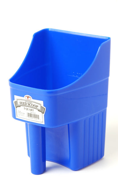 The enclosed feed scoop has a durable plastic design that is built to last. Perfect for supplements, feed and seed with built-in graduation marks for easy measuring.